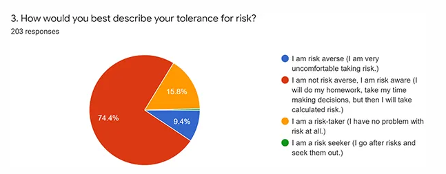 Perhaps things have changed in a decade, and perhaps Rich Thinking has been a part of that change. We hope so. But if it was ever true that women were excessively fearful about risk, it’s not true anymore. Fewer than one in 10 women said they were risk averse, while nearly three quarters said they were risk aware, not risk averse. And about 16% self-identified as risk taker and said they had no problem with risk at all.